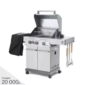 Набор инструментов Deluxe (2шт.) включает в себя лопатку и щипцы, которые позвонят вам с легкостью оперировать продуктами при готовке на гриле. Прорезиненные ручки инструментов не нагреваются.