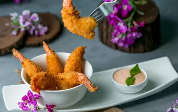 -Морепродукты со снеками из цветной капусты под соусом бешамель